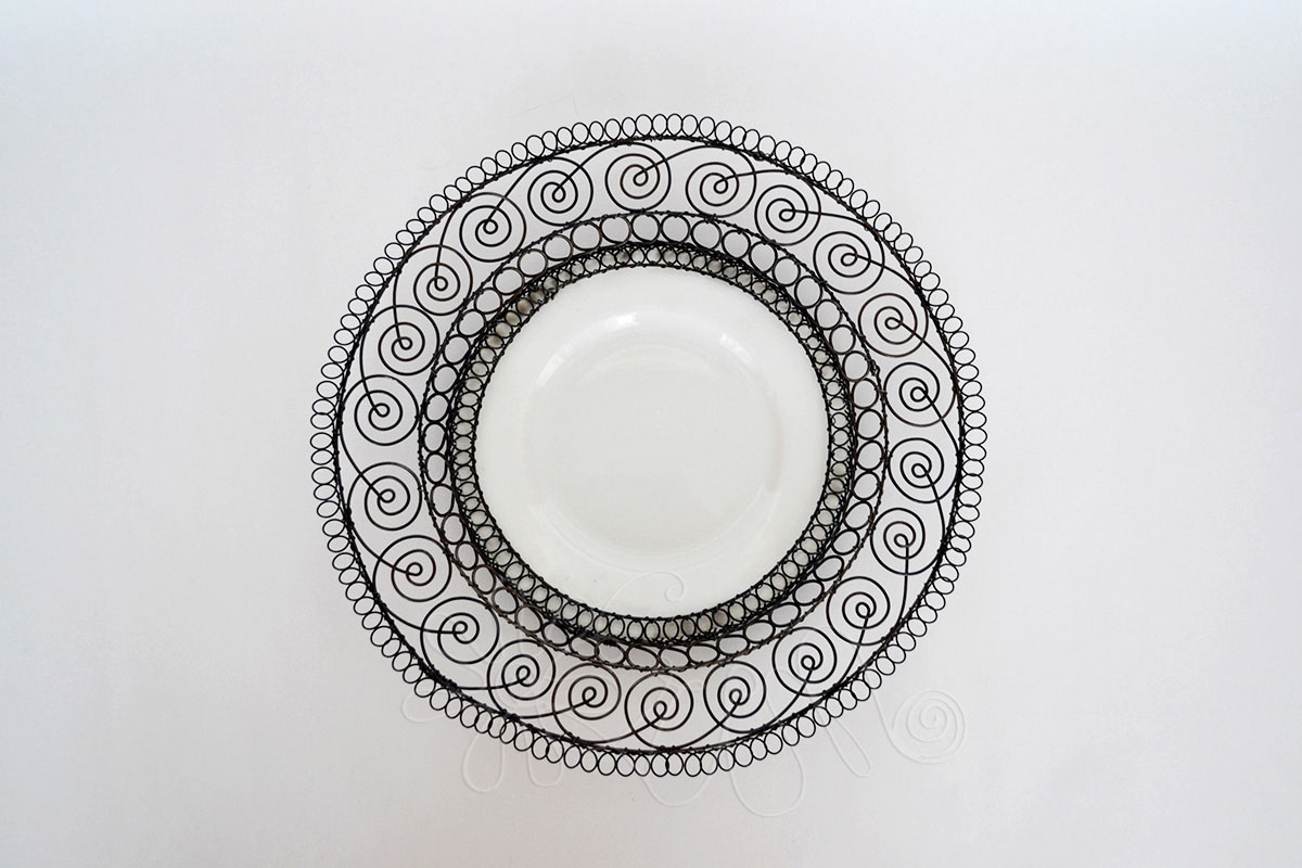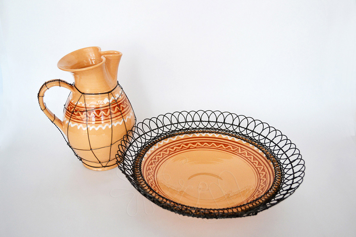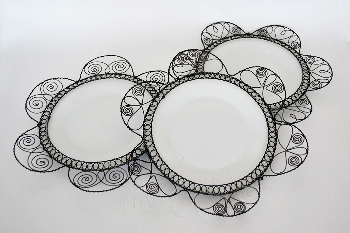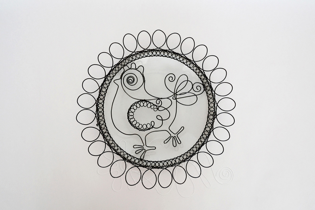 Moje prvé drotárske kroky sprevádzal medený drôt. Je mäkký, tvárny a má veľmi pekné odtiene farieb. Práve jeho mäkkosť ma priviedla k opletaniu rôzne tvarovaných nádob rastlinným motívom. Navzájom previazané hlávky kvetov, listy, úponky umožňujú vytvoriť okolo tela nádoby pevnú a zároveň veľmi dekoratívnu sieť. Niektoré moje staršie práce predstavujem aj v galérii s názvom Archív.